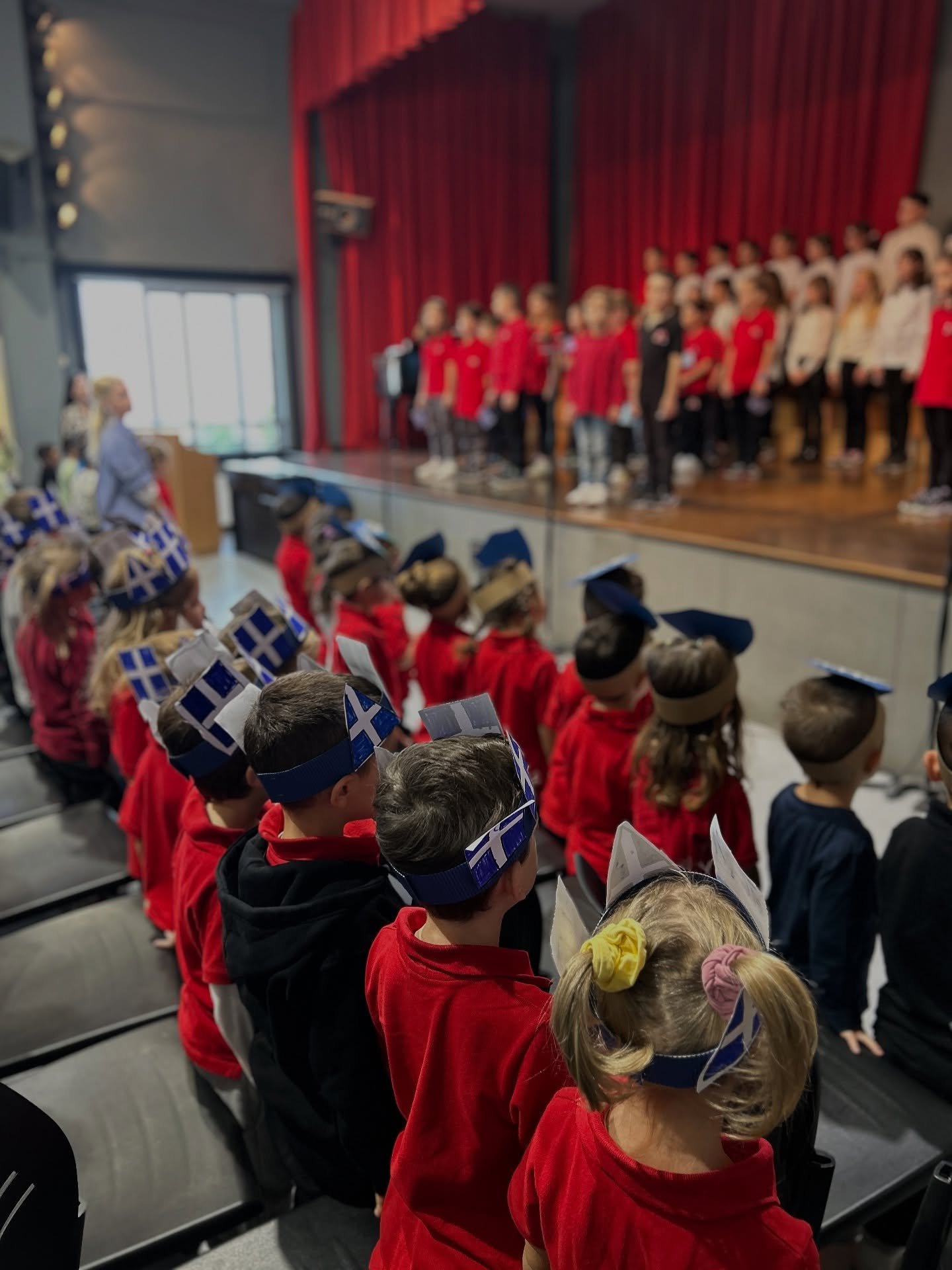 Τα παιδιά της ΣΤ’ τάξης παρουσίασαν μια δραματοποιημένη αφήγηση των σημαντικών γεγονότων: το «ΟΧΙ» του Ιωάννη Μεταξά, τις γυναίκες της Πίνδου και τον αγώνα για την ελευθερία — με μια σύγχρονη πινελιά, όπου ένα παιδί ρωτά το ChatGPT για να μάθει την ιστορία!