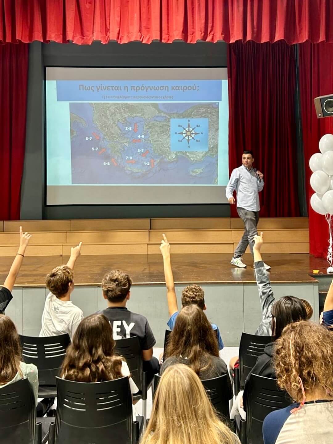 Οι μαθητές και οι μαθήτριες της ΣΤ’ Δημοτικού είχαν την ευκαιρία να παρακολουθήσουν από κοντά τον μετεωρολόγο κ. Γιώργο Τσατραφύλλια σε μια άκρως ενδιαφέρουσα παρουσίαση με τίτλο «Γίνε μετεωρολόγος!».